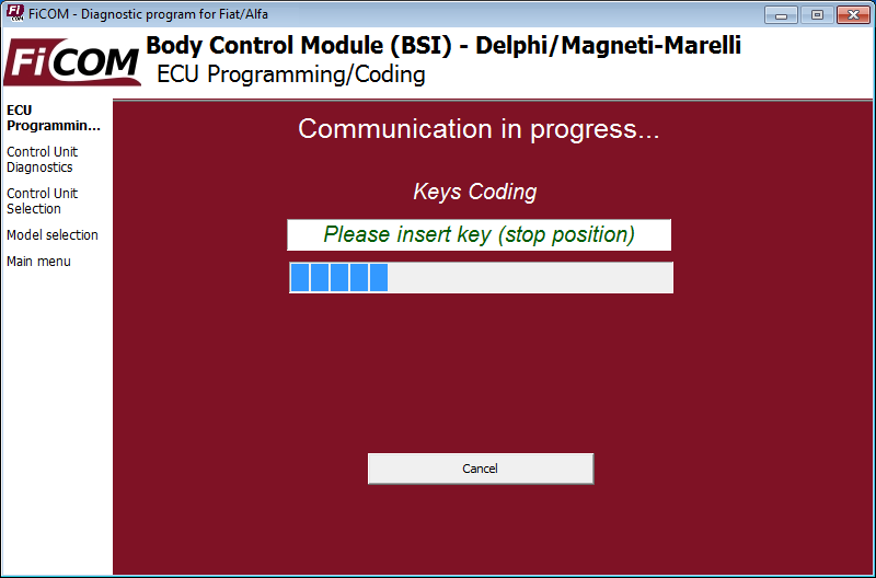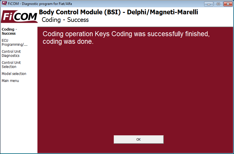 - Włóż wszystkie kluczyki jeden po drugim do stacyjki zgodnie z komunikatem programu. Po włożeniu wszystkich kluczy pojawi się okno z pytaniem czy chcesz zakodować kolejny klucz. Jeśli odpowiesz tak, program będzie czekać na ponowne włożenie nowego klucza. W przeciwnym razie zapisze załadowane klucze i wyświetli informację o zakończeniu kodowania.